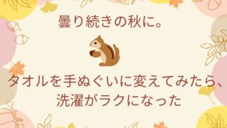 曇り続きで洗濯が乾かない秋。タオルを手ぬぐいに変えてみたら、驚くほど快適に。こどもとのお風呂上がりの工夫や、乾きやすく衛生的な暮らしの小さな工夫を紹介します。