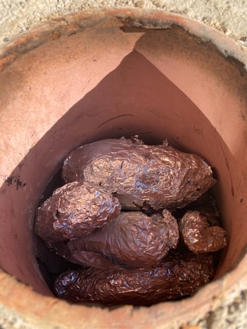 そして収穫のあとは、DIYしたタンドールで焼き芋おやつ。