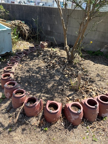 この「いい土」の力を借りたくて、蛸壺(たこつぼ)花壇にも少しお裾分けすることにしました。