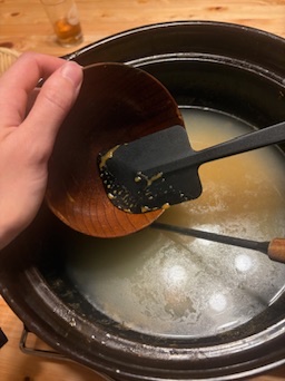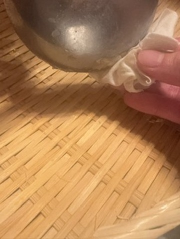 ※お皿の汚れ:ソースなどがこびりついたお皿は、布の切れ端やシリコンスパチュラで徹底的にぬぐい取ります。
